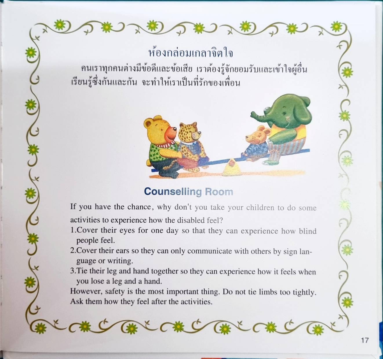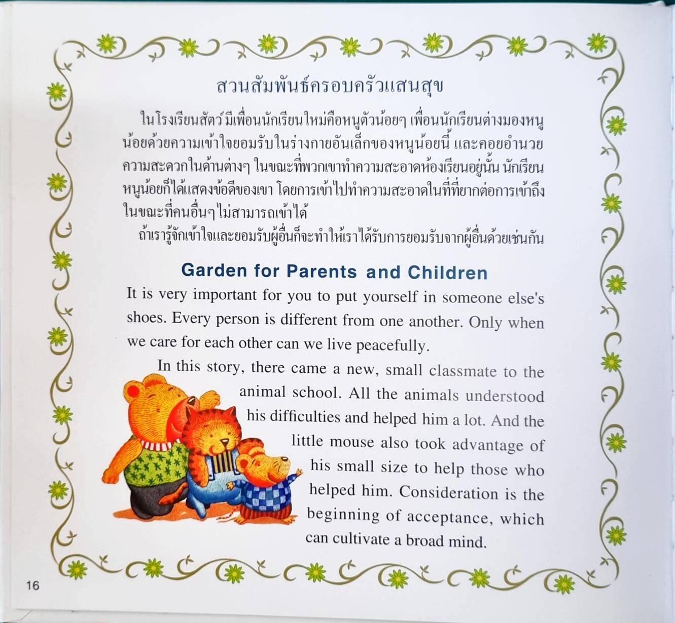 หนังสือนิทานสนุกสนานเน้นเรื่องคุณธรรม จริยธรรม เพื่อปลูกฝังจิตใจของเด็กๆ ให้เห็นคุณค่าของความประพฤติที่ดี พร้อมๆ กับการได้เรียนคำศัพท์ภาษาอังกฤษ ในรูปแบบของบทสนทนาภาษาอังกฤษ