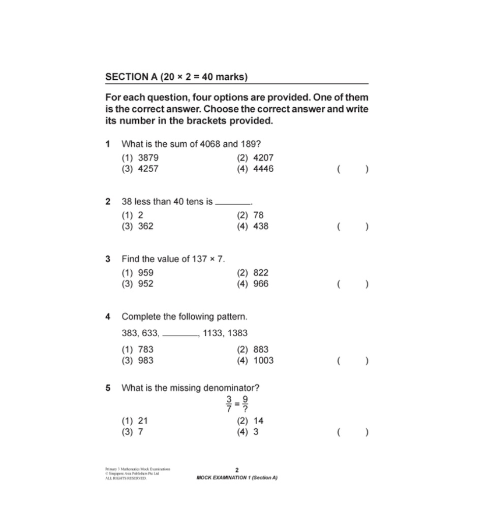 แบบฝึกหัดคณิตศาสตร์ ป.3 Primary 3 Mathematics Mock Examinations