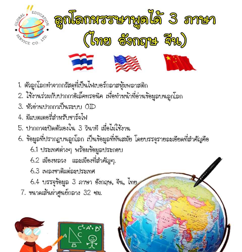 ลูกโลกหรรษา 32" + พร้อมปากกาพูดได้ 3 ภาษา (ไทย อังกฤษ จีน)