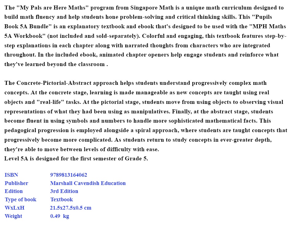 หนังสือเรียนคณิตศาสตร์ ป.5 MPH Maths Pupil's Book 5A (3rd Edition) Primary 5