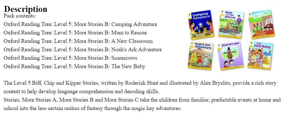 The Stage 7 Biff, Chip and Kipper Stories, written by Roderick Hunt and illustrated by Alex Brychta, provide a rich story context to help develop language comprehension and decoding skills.