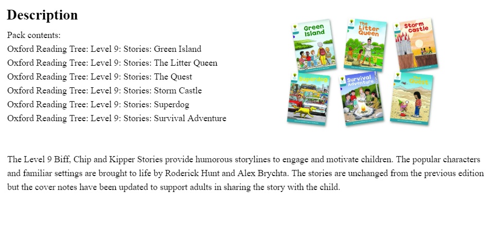 The Stage 9 Biff, Chip and Kipper Stories, written by Roderick Hunt and illustrated by Alex Brychta, provide a rich story context to help develop language comprehension and decoding skills.