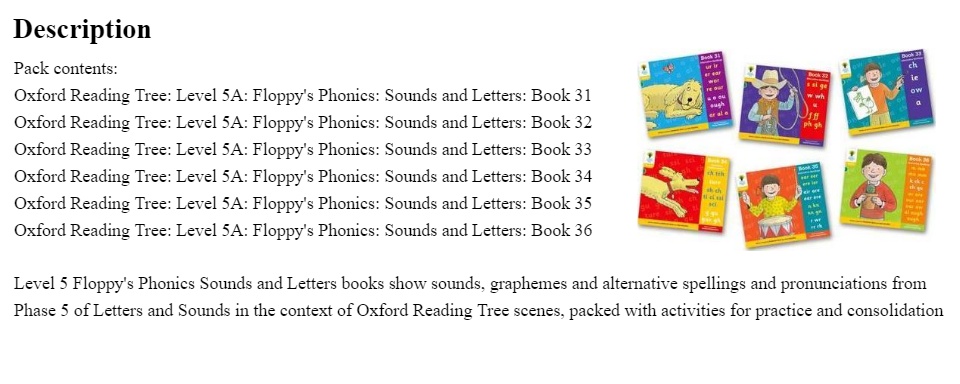 Level 5 Floppy's Phonics Sounds and Letters books show sounds, graphemes and alternative spellings and pronunciations from Phase 5 of Letters and Sounds in the context of Oxford Reading Tree scenes, packed with activities for practice and consolidation.