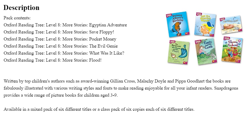 Written by top children's authors such as award-winning Gillian Cross, Malachy Doyle and Pippa Goodhart the books are fabulously illustrated with various writing styles and fonts to make reading enjoyable for all your infant readers. Snapdragons provides a wide range of picture books for children aged 3-9.