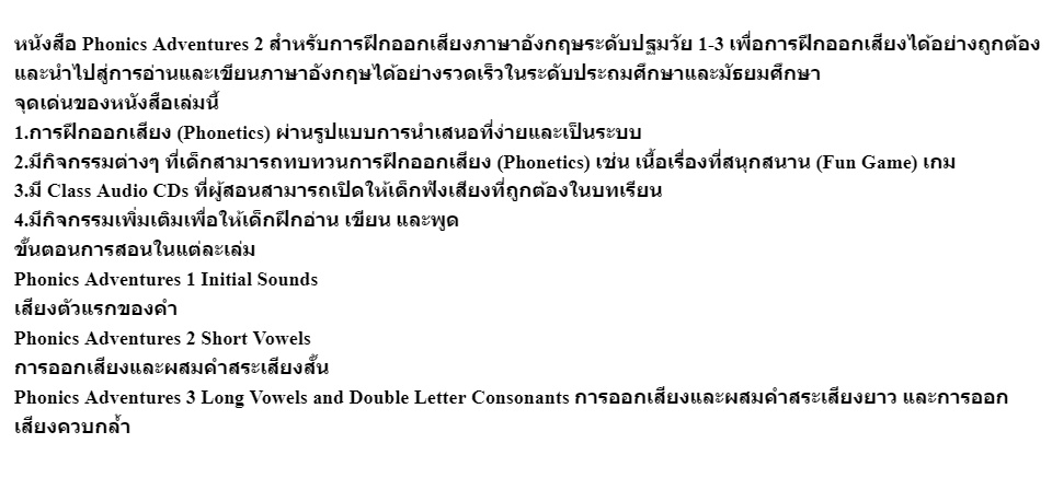 แบบเรียนภาษาอังกฤษ Phonics Adventures 2