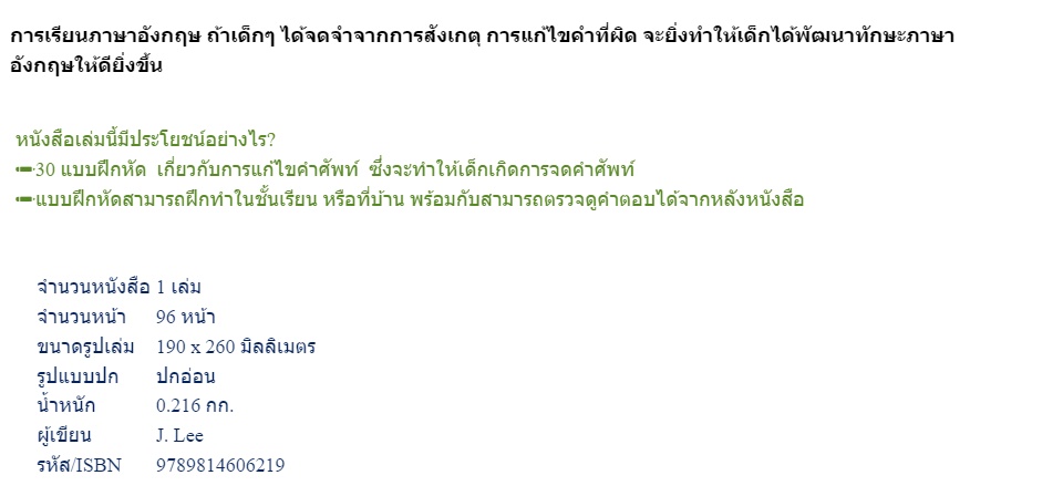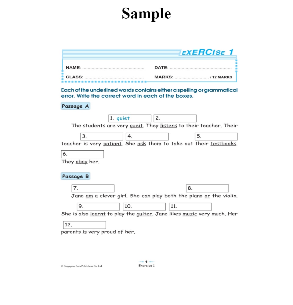Conquer Editing Workbook 1 แบบฝึกหัดให้เด็กๆ แก้ไขคำที่เขียนผิด ซึ่งจะเป็นการฝึกการสังเกตุ และทบทวนคำศัพท์ เพื่อให้เด็กได้พัฒนาการเรียนภาษาอังกฤษมากยิ่งขึ้น