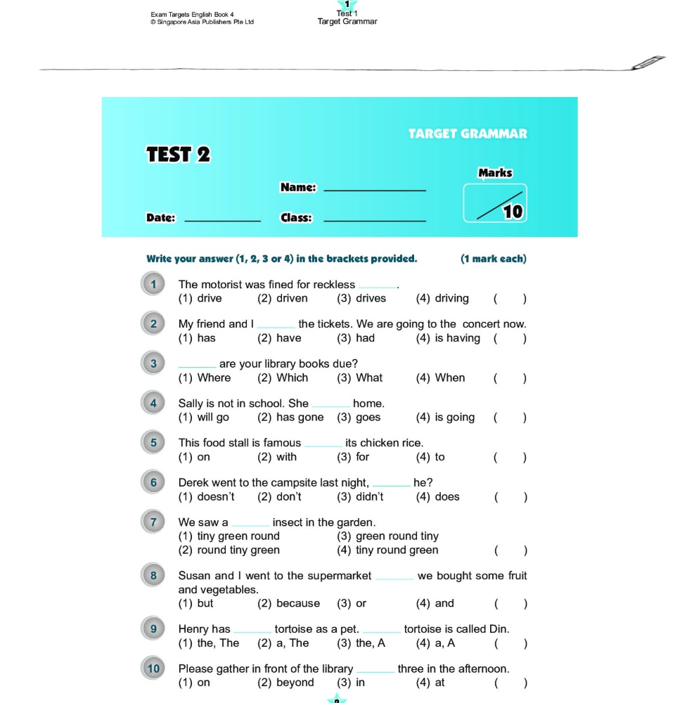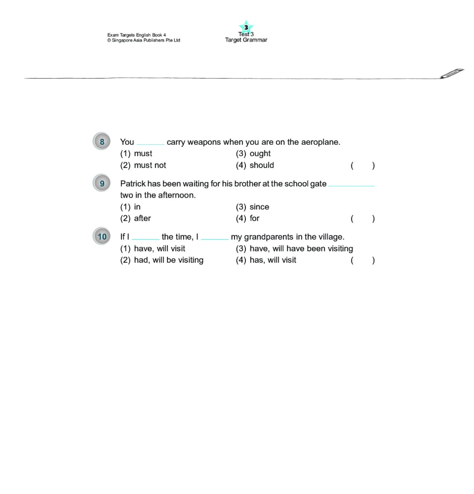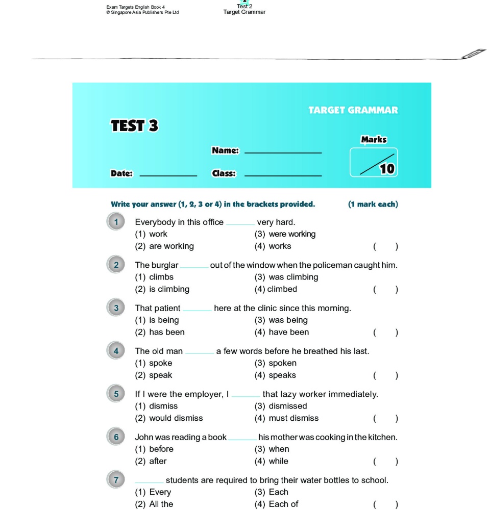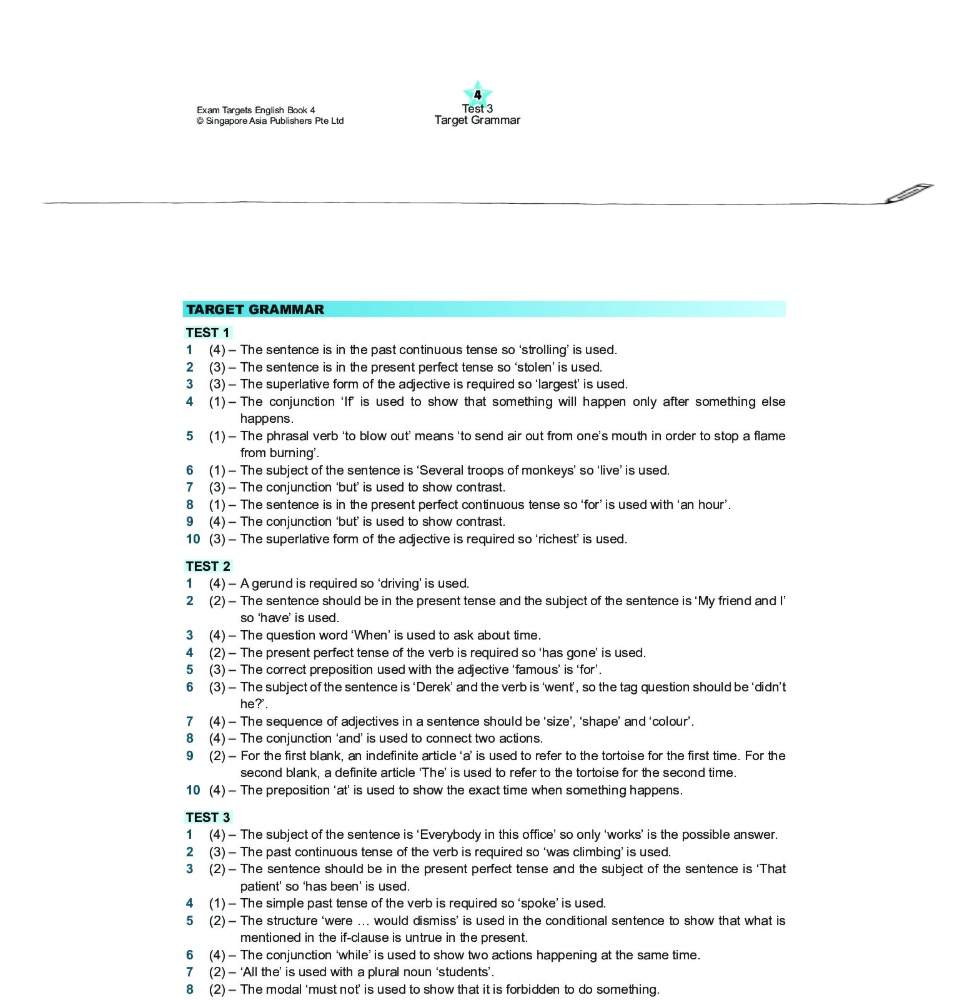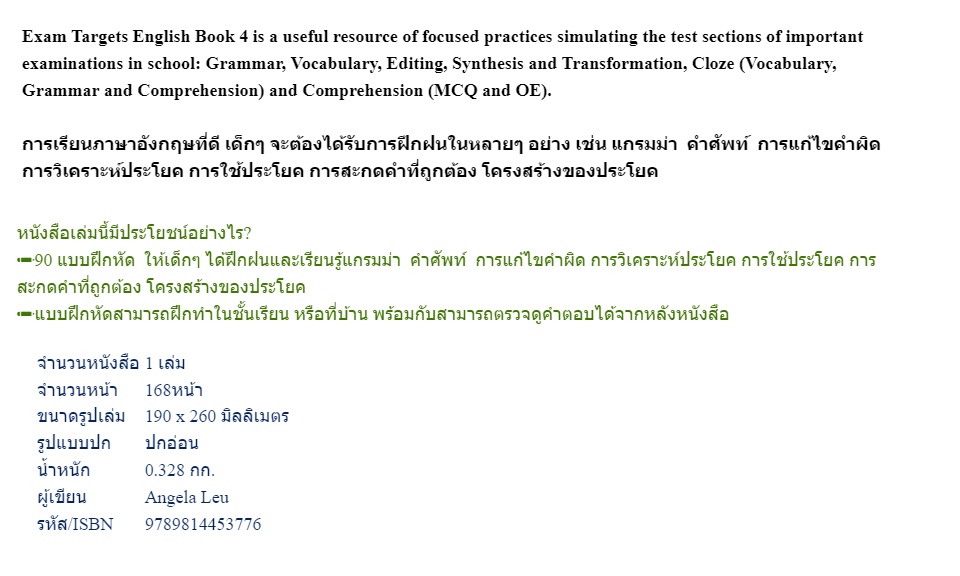 Exam Targets English Book 4 เป็นหนังสือที่รวบรวมแบบฝึกหัดการใช้ Grammar, Vocabulary, Editing, Synthesis & Transformation, Cloze, Comprehension