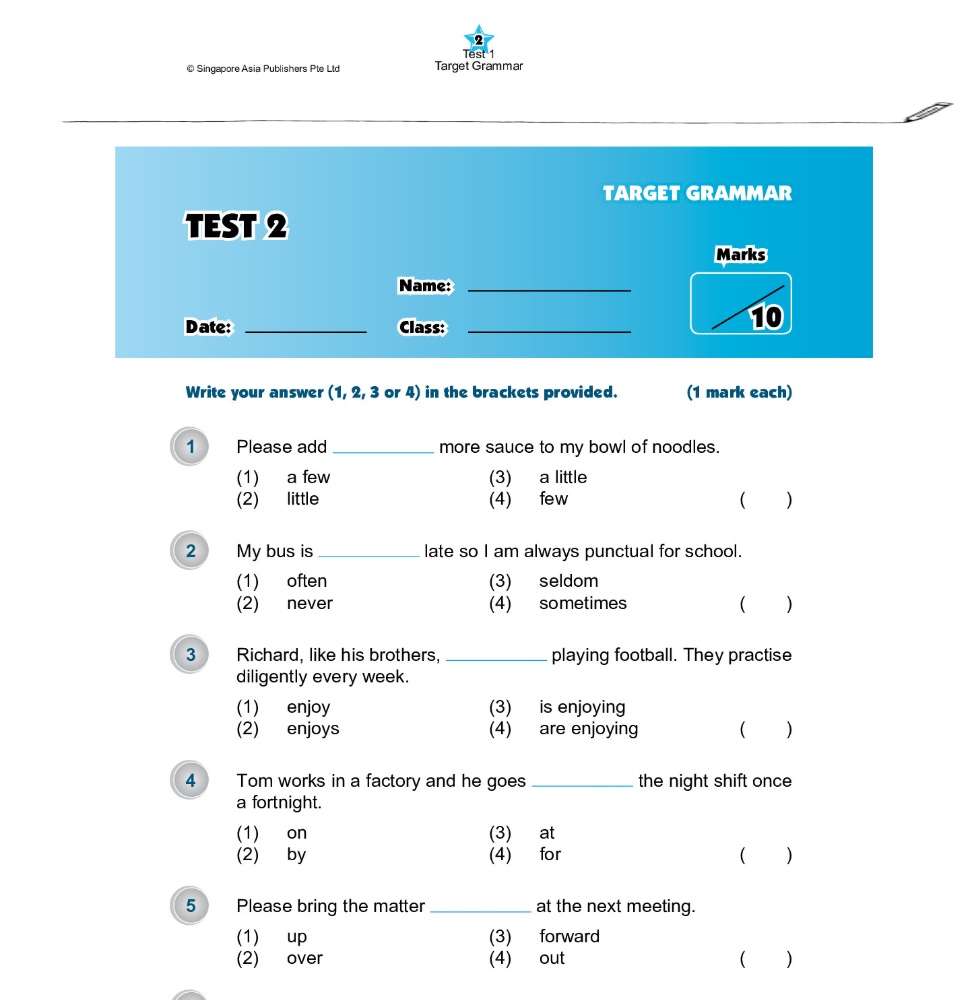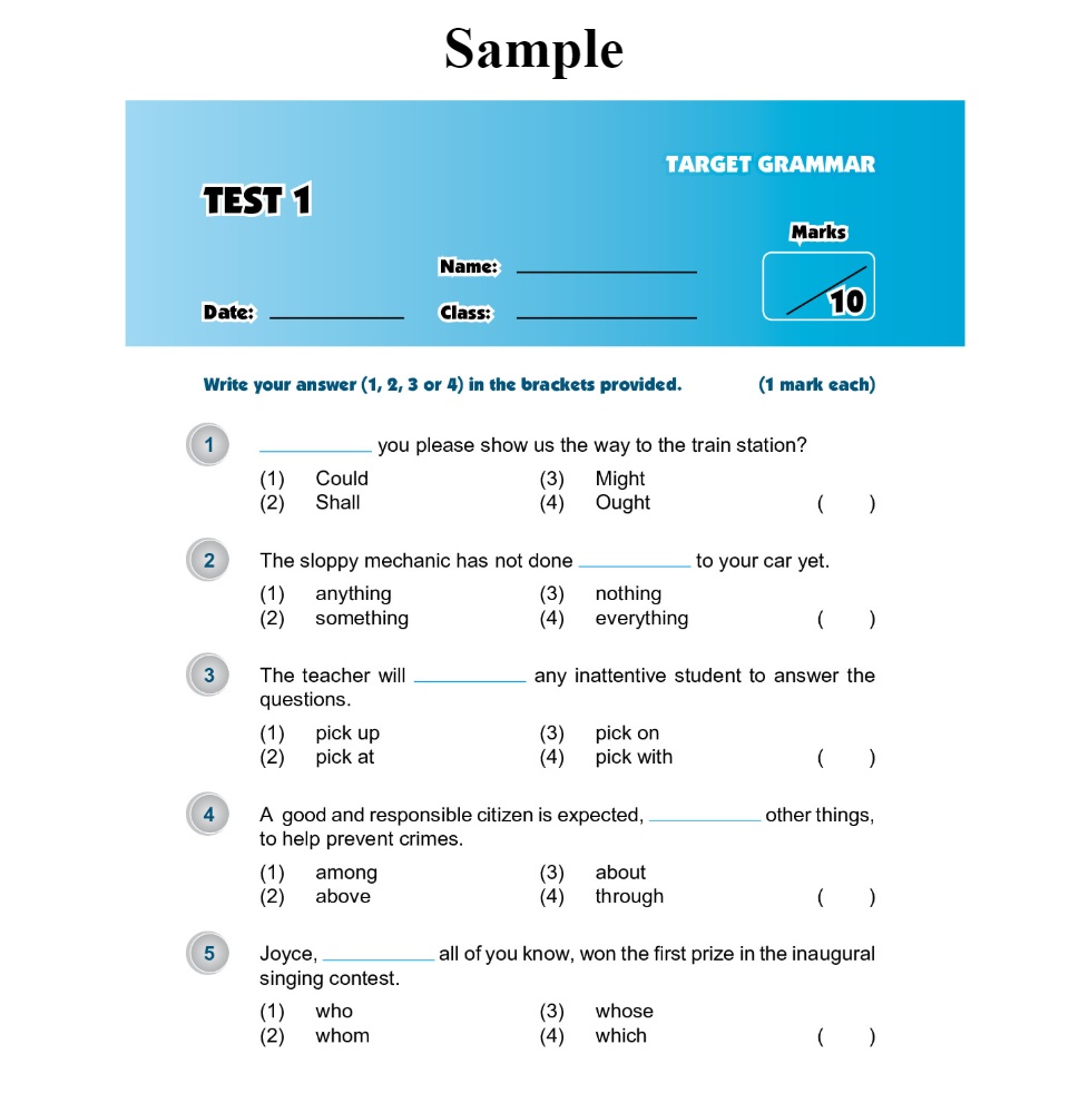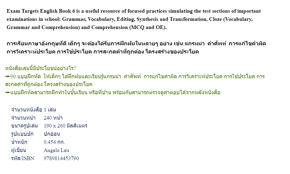 Exam Targets English Book 6 เป็นหนังสือที่รวบรวมแบบฝึกหัดการใช้ Grammar, Vocabulary, Editing, Synthesis & Transformation, Cloze, Comprehension